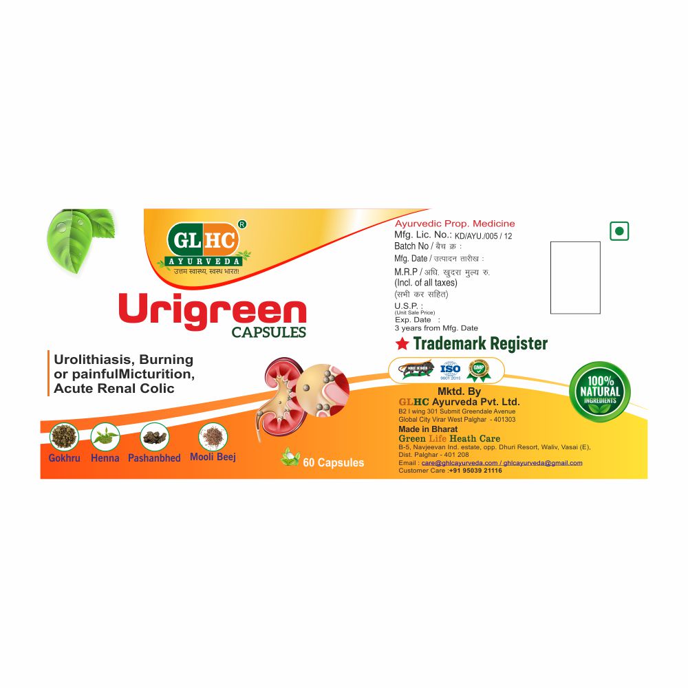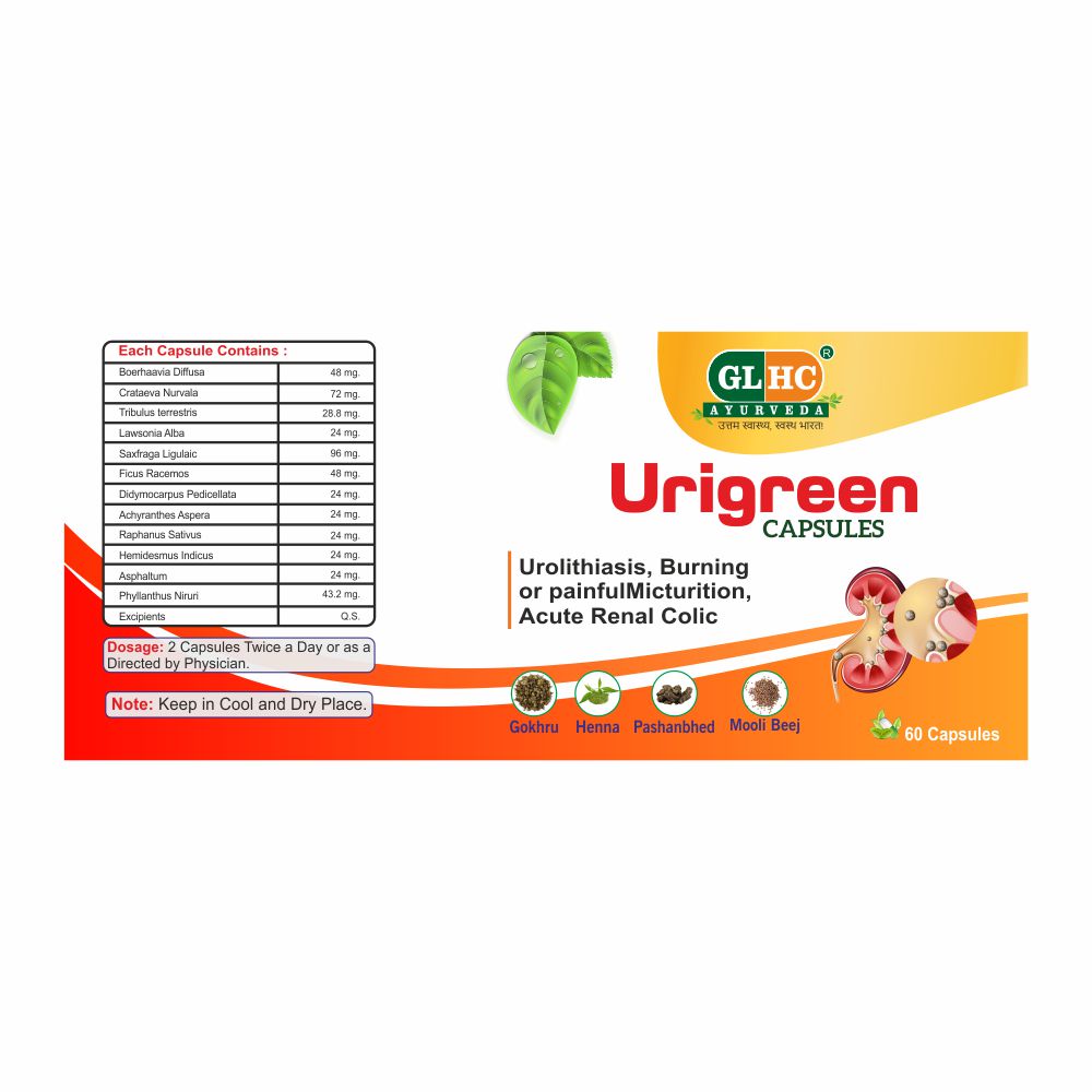 URIGREEN Capsules are expertly formulated to promote optimal urinary tract health. Made with a blend of natural ingredients, these capsules help maintain kidney function, support bladder wellness, and promote overall detoxification. Ideal for those looking to enhance their urinary system’s health, URIGREEN Capsules are designed to flush out toxins, balance hydration, and contribute to better well-being.